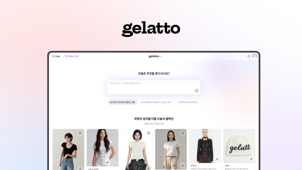 gelatto는 사용자의 취향과 의도를 이해해 탐색과 발견의 전 과정을 자연스럽게 연결한다. 기존 쇼핑 검색이 상품명이나 카테고리 등 단편적인 키워드 입력에 의존했다면, gelatto는 사용자가 상황과 스타일 맥락을 문장형으로 자유롭게 입력하면 최적의 결과를 찾아주는 에이전틱 탐색 환경을 제공한다. AI가 단순 검색을 넘어 소비자의 탐색과 발견 전 과정을 주도적으로 돕는 ‘에이전틱 디스커버리(Agentic Discovery)’의 경험을 구현한 것이 핵심이다.